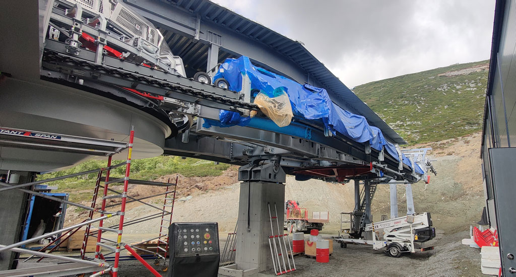 Arbetet med övre sektionen av 6-stolsliften/heisen och sammanlänkningen av de två sektionerna framskrider fint och helt enligt plan. Vi har en lutning i övre sektion som bitvis är över 80% där vi ska placera några av de totalt 8 masterna upp till toppstationen som ligger på en höjd av 1 365 m över havet.